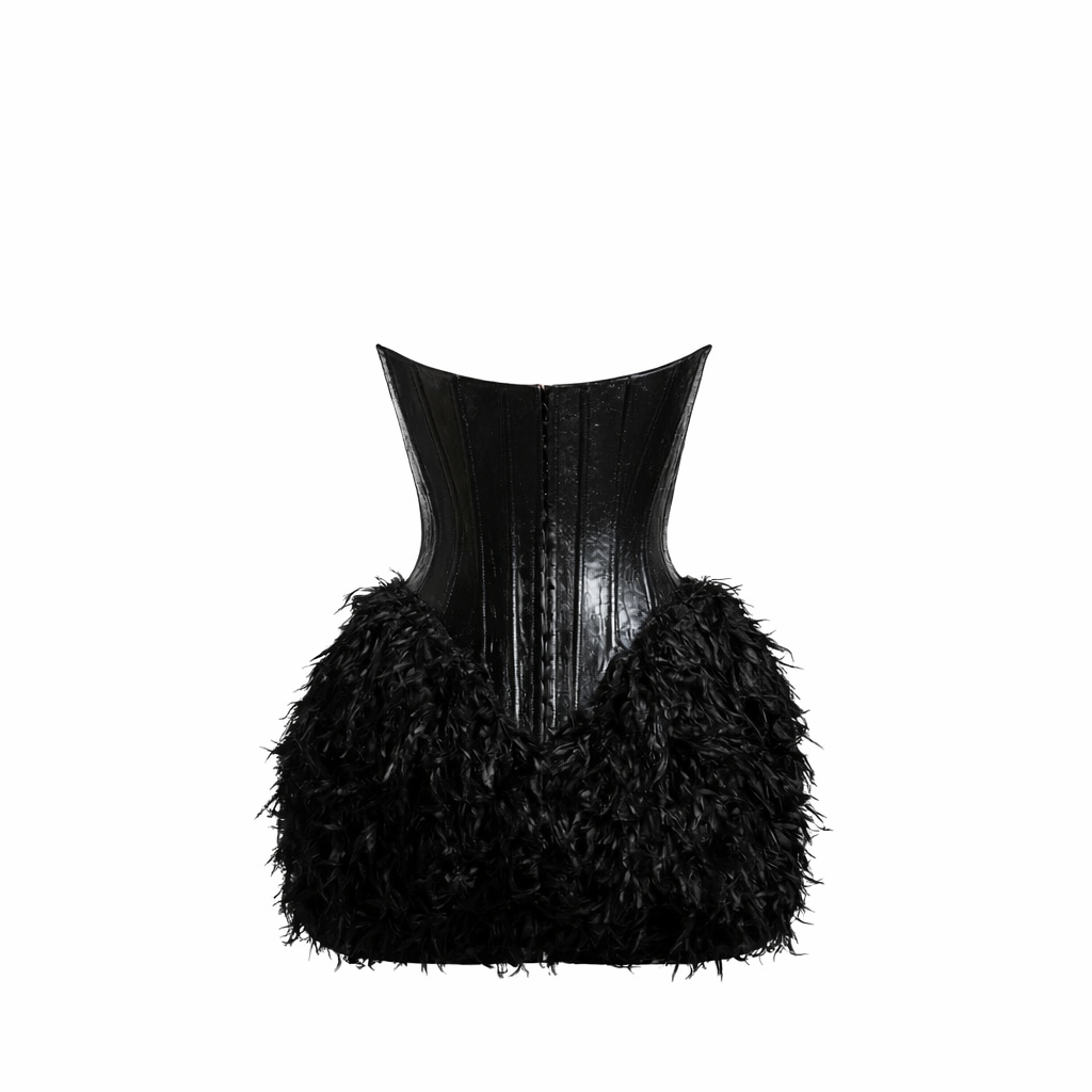 Midnight Feather Corset Mini Dress